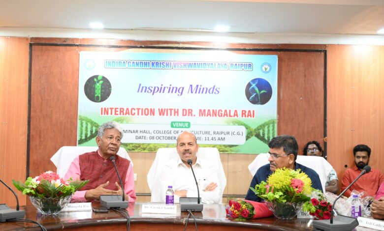 रायपुर, इंदिरा गांधी कृषि विश्वविद्यालय, रायपुर द्वारा आज कृषि महाविद्यालय के सेमिनार हॉल में ” डॉ. मंगला राय से संवाद” नामक एक प्रेरणादायक सत्र आयोजित किया गया जिसमें भारतीय कृषि अनुसंधान परिषद नई दिल्ली के पूर्व महानिदेशक एवं विख्यात कृषि वैज्ञानिक डॉ मंगला राय ने वैज्ञानिकों एवं विद्यार्थियों का मार्गदर्शन किया. इस कार्यक्रम का उद्देश्य विद्यार्थियों, शोधार्थियों एवं संकाय सदस्यों को कृषि विज्ञान के क्षेत्र में अग्रणी व्यक्तित्वों से रूबरू कराना तथा उनके अनुभवों से प्रेरणा प्राप्त करना था।