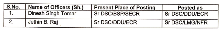 RPF; आरपीएफ के तीन आईजी, तीन कमांडेंट समेत 7 एएससी के तबादले, बिलासपुर के सीनियर कमांडेंट दिनेश सिंह तोमर का भी तबादला