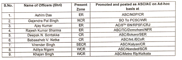 वहीं एक अगल तबादला आदेश में सात ASC समेत कुल 09 लोगों का इधर से उधर किया गया है. इसमें सभी सहायक कमांडेंट शामिल है. दीपक सोनटके को दक्षिण पूर्व रेलवे के बोकारो का ASC बनाकर भेजा गया है.