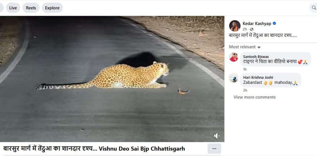 बता दें कि 16 जनवरी शुक्रवार को वन मंत्री केदार कश्यप ने फेसबुक पर एक वीडियो पोस्ट किया, जिसमें उन्होंने लिखा “बारसूर मार्ग में तेंदुआ का शानदार दृश्य…”। वीडियो सामने आते ही इलाके में दहशत का माहौल बन गया और लोग इसकी सच्चाई जानने में जुट गए।
