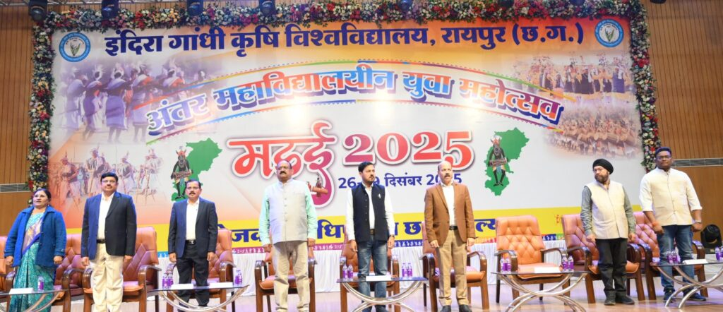 रायपुर, इंदिरा गांधी कृषि वि श्वविद्यालय रायपुर में 26 से 29 दिसम्बर 2025 तक आयोजित चार दिवसीय 31वें अंतर महाविद्यालयीन युवा महोत्सव ‘‘मड़ई-2025’ का शुभारंभ 31 महाविद्यालयों के लगभग 900 विद्यार्थियों द्वारा सहभागिता से हुआ। कृषक सभागार में आयोजित मड़ई 2025 की शुरूआत भव्य सांस्कृतिक शोभायात्रा से हुई जिसमें 31 कृषि महाविद्यालयों के विद्यार्थियों ने अपने-अपने जिलों की लोक संस्कृति, लोक पर्व, स्थानीय रीति-रिवाज, तथा अन्य विशेषताओं को प्रदर्शित किया। पारंपरिक परिधानों में सजे इन सांस्कृतिक दलों ने स्थानीय लोक गीतों एवं लोक नृत्यों की अनुपम छटा बिखेरी। इन दलों ने छत्तीसगढ़ के प्रमुख नृत्यों का आकर्षक प्रस्तुतिकरण दिया।
