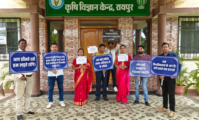 इंदिरा गांधी कृषि विश्वविद्यालय एवं पशुपाअलन विश्वविद्यालय से सन्म्बद्ध प्रदेश के सभी 28 कृषि विज्ञान केंद्रों मे कलम बंद हड़ताल व धरना नेशनल फोरम ऑफ केवीके के आह्वान पर किया गया. कृषि विज्ञान केंद्र के प्रदर्शनकारी वैज्ञानिकों का कहना है कि कृषि विज्ञान केंद्र पूरे देश में वर्ष 1974 से भारतीय कृषि अनुसंधान परिषद नई दिल्ली, राज्य के विभिन्न कृषि विश्वविद्यालयों की ओर से संचालित किया जा रहा है. जो किसानों को आत्मनिर्भर बनाने में निरंतर प्रयासरत है.