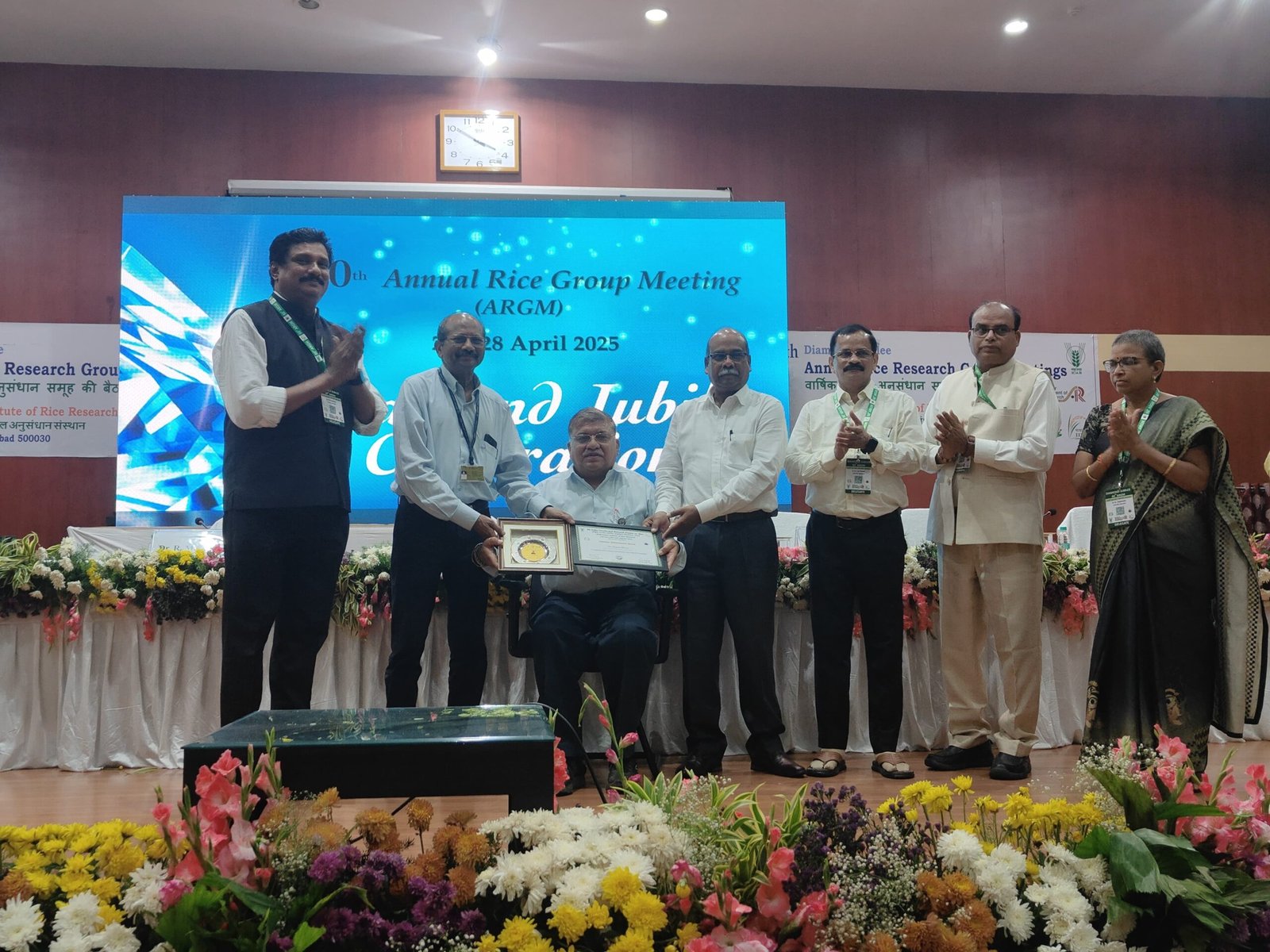 रायपुर, 60th वार्षिक चावल अनुसंधान समूह भारतीय कृषि अनुसंधान संस्थान हैदराबाद में आयोजित वर्कशॉप में डा दीपक शर्मा , प्रोफेसर, आनुवांशिकी एवं पादप प्रजनन, आई जी के वीं , रायपुर को लाइफ टाइम अचीवमेंट अवार्ड से सम्मानित किया गया I उन्होंने म्यूटेंट धान की 6 औषधीय धान की एक , हाइब्रिड धान की दो, एवं धान की अन्य लगभग 10 से ज्यादा किस्मों के विकास मै टीम वर्क के रूप में कार्य किया l