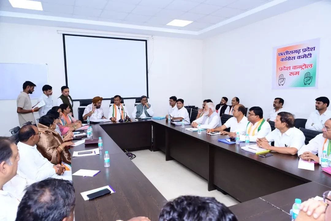प्रदेश कांग्रेस की महत्वपूर्ण बैठक प्रदेश कांग्रेस अध्यक्ष दीपक बैज एवं नेता प्रतिपक्ष डॉ. चरणदास महंत की उपस्थिति में हुईइस बैठक में संगठन सृजन के तहत मंडल, सेक्टर कमेटियों के गठन पर चर्चा एवं समीक्षा, संगठन सृजन के तहत ब्लॉक कांग्रेस कमेटी में अध्यक्ष नियुक्ति पर चर्चा की गयी