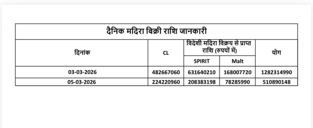 रायपुर, होली के मौके पर छत्तीसगढ़ में शराब की बिक्री ने नया रिकॉर्ड बना दिया। होली के दो दिनों में प्रदेश के मदिरा प्रेमी 1 अरब 79 करोड़ रुपये से ज्यादा की देसी और विदेशी शराब पी गए। जानकारी के अनुसार होली से एक दिन पहले 3 मार्च को ही 128 करोड़ रुपये से अधिक की शराब की बिक्री हुई, जो सामान्य दिनों की तुलना में कई गुना ज्यादा है। वहीं 5 मार्च को भी 51 करोड़ रुपये से अधिक की शराब बिकी।