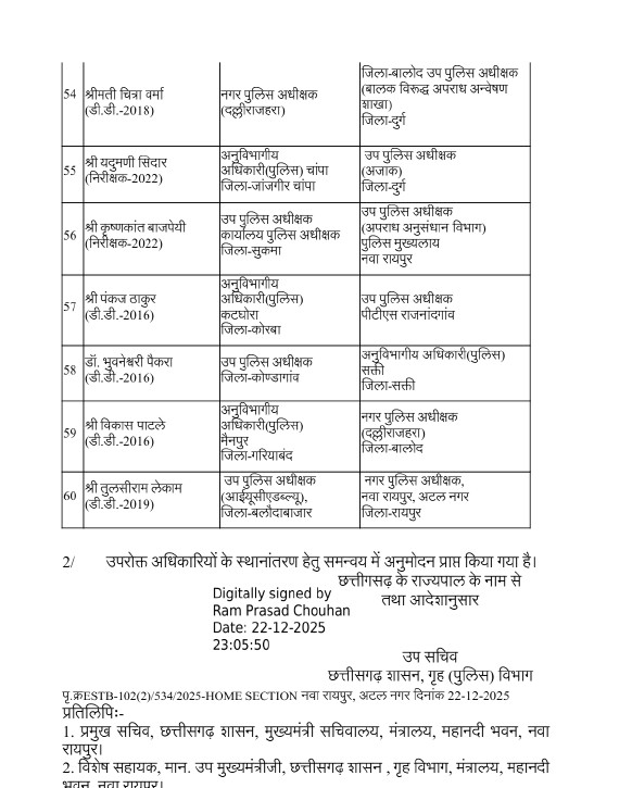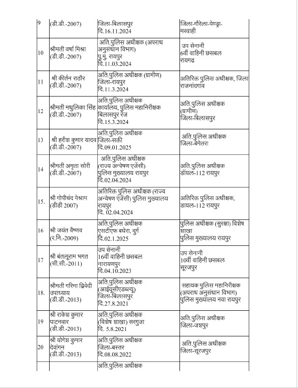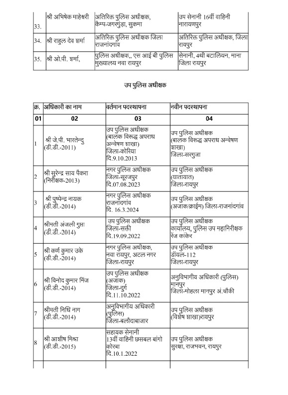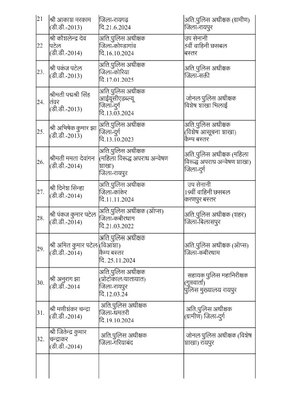 POLICE; पुलिस महकमें में बड़ी ‘सर्जरी’, राज्य पुलिस सेवा के 95 अफसरों का तबादला