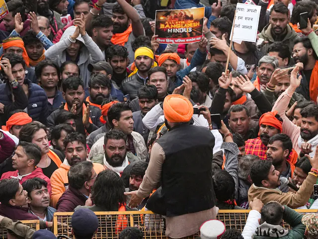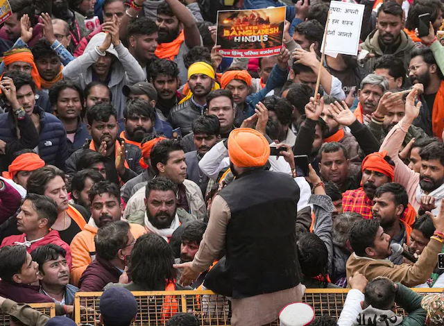 PROTEST; बांग्लादेश में दीपू चंद्र दास की हत्या पर आक्रोश, दिल्ली में बांग्लादेशी हाई कमीशन के बाहर प्रदर्शन