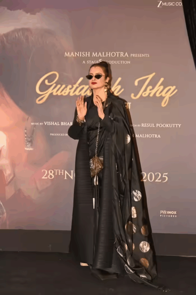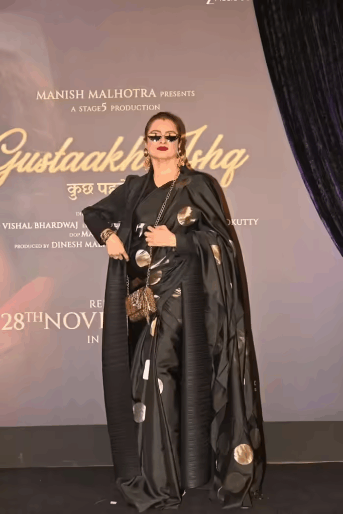 बीते दिन ‘गुस्ताख इश्क’ की स्पेशल स्क्रीनिंग रखी गई। जहां दर्जनों सितारों का मेला रखा। एक के बाद एक हसीना आती गई और स्टाइल मारकर सबको दीवाना बनाती गई। लेकिन फिर जैसे ही काली साड़ी पहनकर 71 साल की रेखा ने एंट्री मारी तो बाकी सबका स्टाइल धरा का धरा रह गया। छोटे-छोटे कपड़ों में ग्लैमरस रूप दिखा रही हसीनाओं पर भी रेखा की काली साड़ी का जादू भारी पड़ गया।