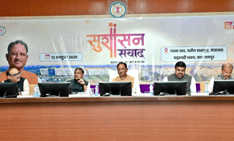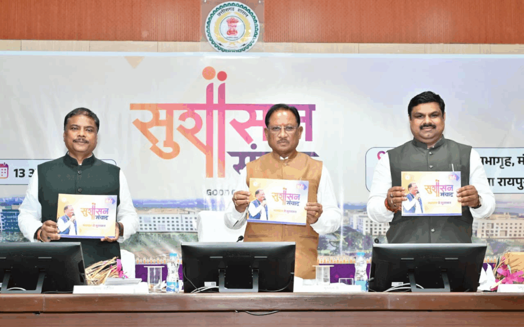 रायपुर, मंत्रालय महानदी भवन के पंचम तल स्थित ऑडिटोरियम में आज मुख्यमंत्री विष्णुदेव साय की अध्यक्षता में ‘सुशासन संवाद’ कार्यक्रम का आयोजन किया गया। इस अवसर पर वन मंत्री केदार कश्यप, स्कूल शिक्षा मंत्री गजेन्द्र यादव, मुख्य सचिव विकास शील, मुख्यमंत्री के प्रमुख सचिव सुबोध कुमार सिंह, मुख्यमंत्री के सचिव राहुल भगत, विभागीय सचिव, कलेक्टर, पुलिस अधीक्षक, डीएफओ सहित राज्य के वरिष्ठ अधिकारी उपस्थित थे।