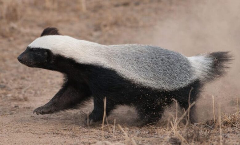 हनी बैजर भारत में बहुत ही सीमित क्षेत्रों में पाया जाता है, और इसे दुर्लभ प्रजातियों में गिना जाता है. यह अपनी असाधारण बहादुरी, आक्रामक स्वभाव और मजबूत त्वचा के लिए जाना जाता है. मधुमक्खियों के छत्तों से शहद निकालकर खाने की आदत के कारण इसे हनी बैजर कहा जाता है. गौरतलब है कि हनी बैजर, बड़े शिकारी जानवरों की तुलना में अपेक्षाकृत छोटा होने के बावजूद, हनी बैजर लड़ाई से पीछे नहीं हटता, यहाँ तक कि अपने से कई गुना बड़े जानवरों से भी. शेर, लकड़बग्घे और यहाँ तक कि ज़हरीले साँप भी हनी बैजर के दृढ़ रवैये और प्रभावशाली जीवन रक्षा कौशल के कारण उससे दूर भाग जाते हैं.