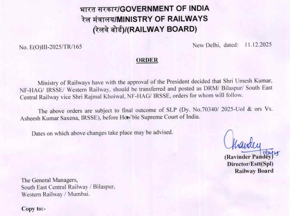 RAILWAY; रेल हादसे के बाद बिलासपुर डीआरएम पर गिरी गाज ,उमेश कुमार को मिली जिम्मेदारी