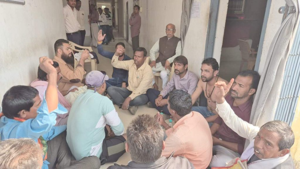 PROTEST; तहसील कार्यालय में नारेबाजी के साथ धरने पर बैठे किसान, तहसीलदार से हैं परेशान